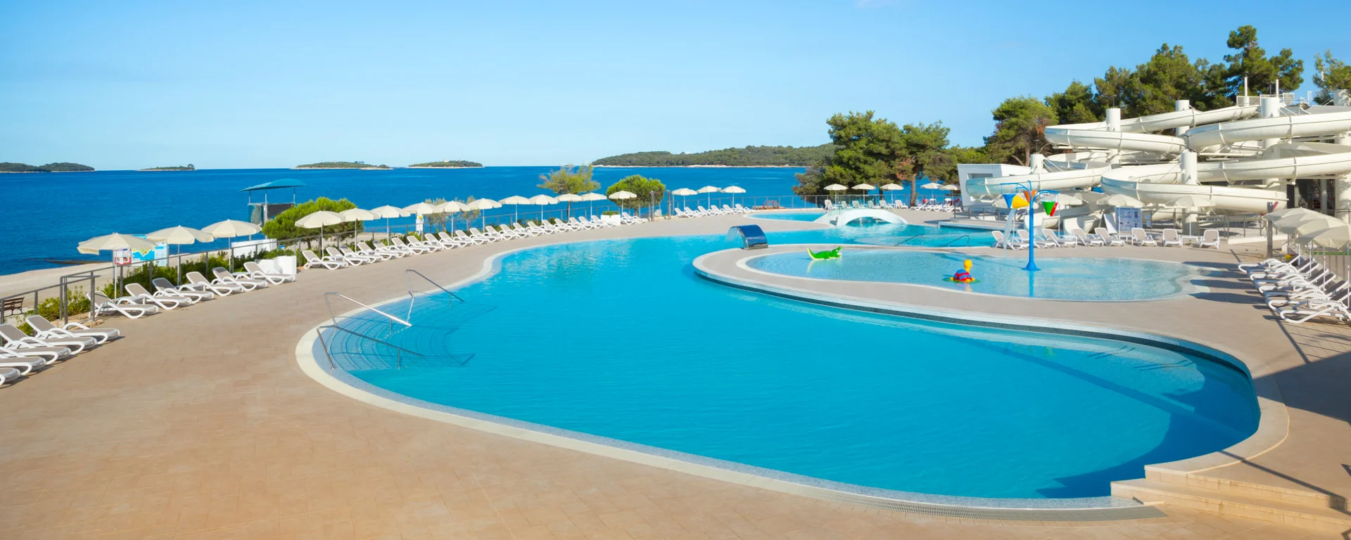 Erleben Sie einen unvergesslichen Badeurlaub im Resort Villas Rubin an der Küste von Rovinj mit Aussicht auf viele kleine Inseln. Hier erwarten Sie vielfältige Sport- und Freizeitmöglichkeiten sowie Pools mit Wasserrutschen. Zahlreiche natürliche Kies- und Felsstrände, Restaurants und Bars mit Meerblick, eingebettet in mediterrane Vegetation, laden zum Verweilen ein.