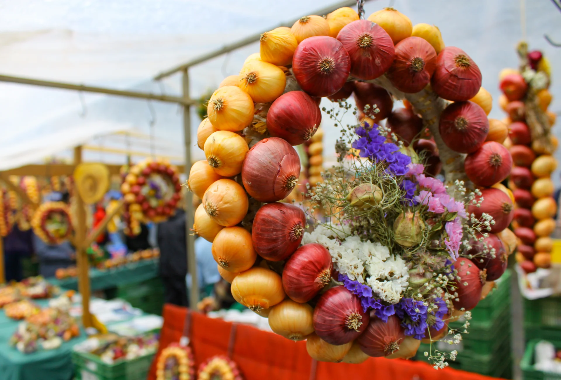 Seit 1976 ist das Büllefest auf der Höri am Bodensee eine liebgewonnene Tradition. An über 40 liebevoll dekorierten Ständen präsentieren die Einwohner von Moos kunstvoll geflochtene Zöpfe und Kränze aus den roten und gelben Büllen. Die Zwiebeln werden bemalt, verziert oder zu kreativen Gebilden verarbeitet – ein Fest für Augen und Sinne!