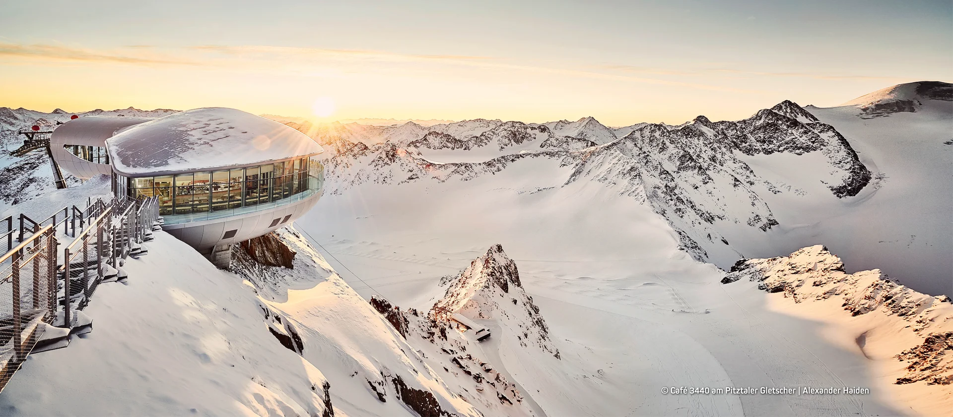 Dort, wo der Himmel auf die Erde trifft, liegt das höchste architektonische Highlight Tirols: Das Café 3440 – ein modernes Bauwerk, welches sich gekonnt in die Bergwelt des Pitztaler Gletschers einfügt.