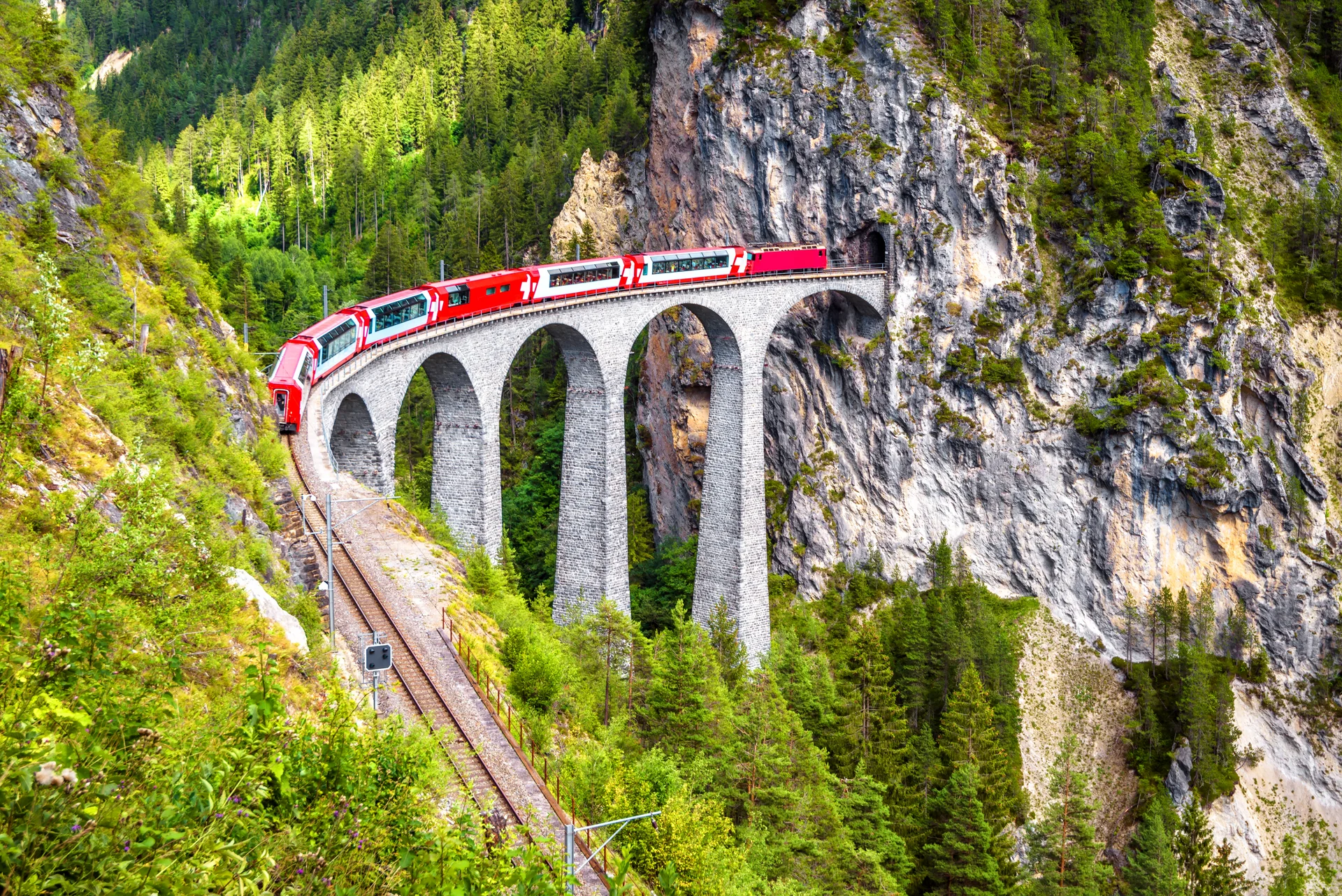 Die Bernina Bahn ist eine der spektakulärsten Bahnstrecken der Welt und ein absolutes Muss für Reisende, die die atemberaubende Schönheit der Schweizer Alpen erleben möchten. Diese UNESCO-Weltkulturerbestrecke verbindet die Städte Chur und Tirano und bietet den Passagieren atemberaubende Ausblicke auf majestätische Berge, glitzernde Gletscher und malerische Täler. Besonders bemerkenswert ist die Strecke über den Berninapass, die mit ihren beeindruckenden Viadukten und Kehrschleifen zu den höchsten Punkten der Bahn führt. Die Bernina Bahn ist nicht nur für ihre landschaftliche Schönheit bekannt, sondern auch für ihre technische Meisterleistung, da sie als eine der höchsten Bahnlinien Europas gilt. Ein Besuch auf der Bernina Bahn ist eine hervorragende Gelegenheit, die unberührte Natur der Alpen zu genießen, während man in einem komfortablen Zug reist. Die Kombination aus atemberaubenden Ausblicken, historischer Bedeutung und der Möglichkeit, die alpine Landschaft hautnah zu erleben, macht die Bernina Bahn zu einem unvergesslichen Erlebnis für Reisende.