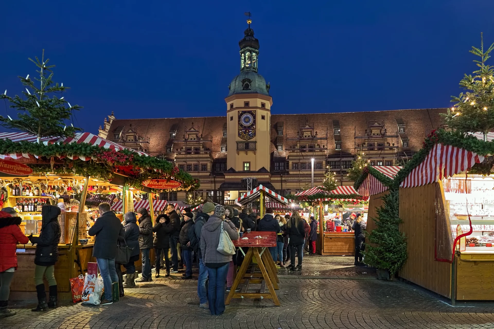 Neben den handwerklichen Erzeugnissen spielt auch das kulinarische Angebot eine zentrale Rolle auf dem Leipziger Weihnachtsmarkt. Die Besucher können sich auf eine Vielzahl von regionalen Spezialitäten freuen, die die kalte Jahreszeit kulinarisch versüßen. Von herzhaften Speisen wie Bratwurst oder Langos bis hin zu süßen Leckereien wie Lebkuchen und kandierten Äpfeln – die Auswahl ist reichhaltig und bietet für jeden Geschmack etwas. Besonders beliebt sind die Backwaren, wie der sächsische Christstollen, der nach alten Rezepten gebacken wird sowie Kräppelchen oder Baumstriezel. Dazu passt ein heißer Glühwein oder Punsch, der die winterliche Stimmung abrundet.