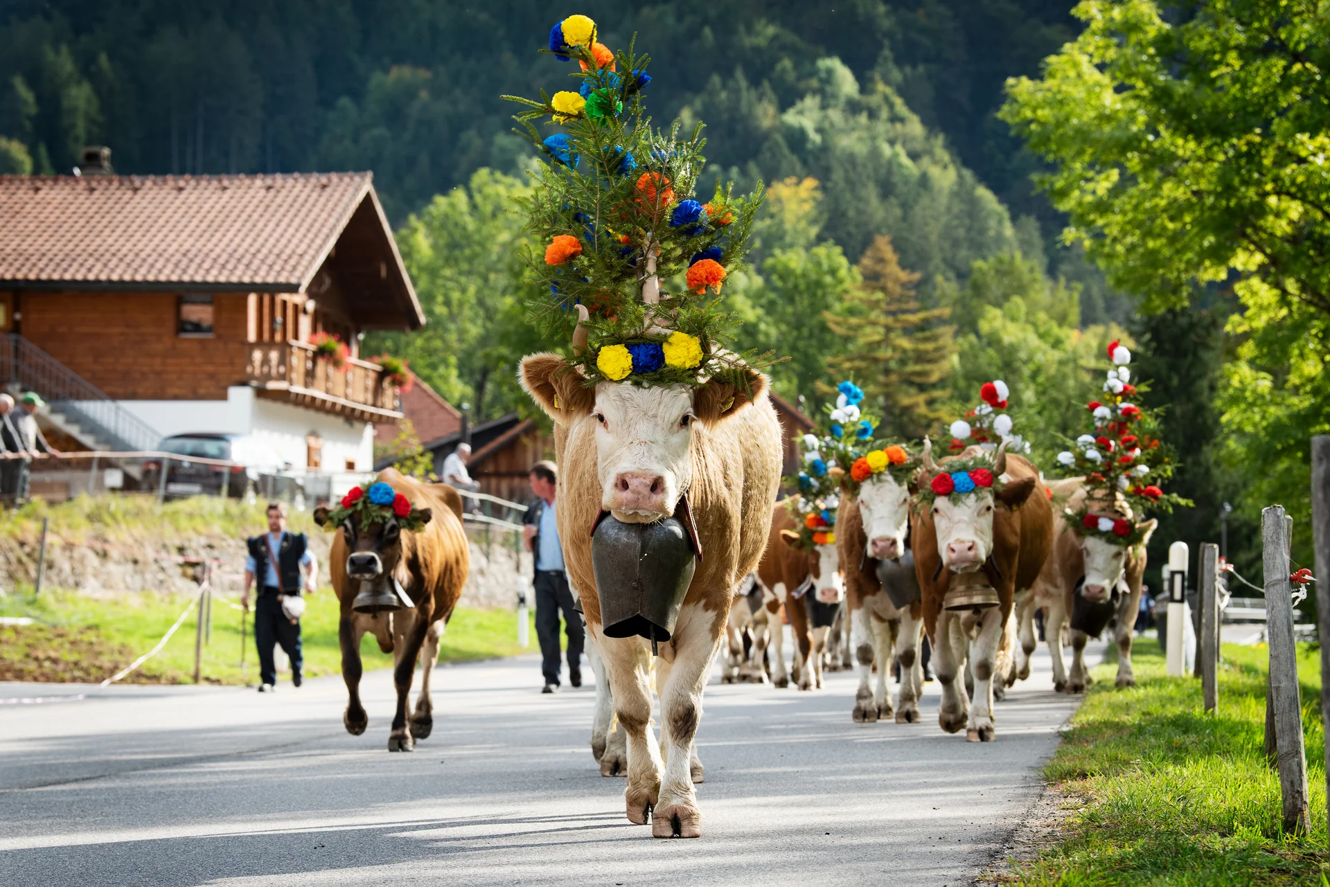 Schon von weitem hört man das Tönen der riesengroßen Schellen und Glocken, wenn ca. 1000 Stück Vieh von fünf Alpen zurück ins Tal zu Ihren Besitzern kehren und am Scheidplatz eintreffen. Beim Almabtrieb im Allgäu, auch Viehscheid genannt, erleben Groß und Klein jedes Jahr aufs Neue ein Stück Brauchtum hautnah. Verbunden mit dem Viehscheid findet ein großer Krämermarkt mit Verkaufsständen, Festzelt und Fahrgeschäften statt.